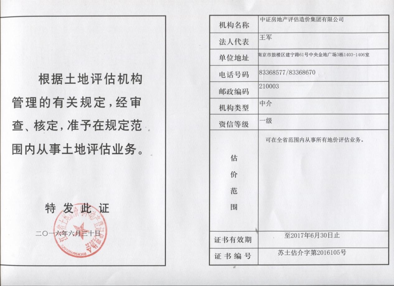 “极速电竞”荣获由“江苏省土地估价与不动产登记代理协会”颁发的“一级资信”等级证书。详见证书