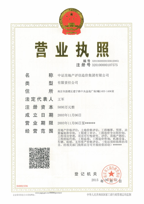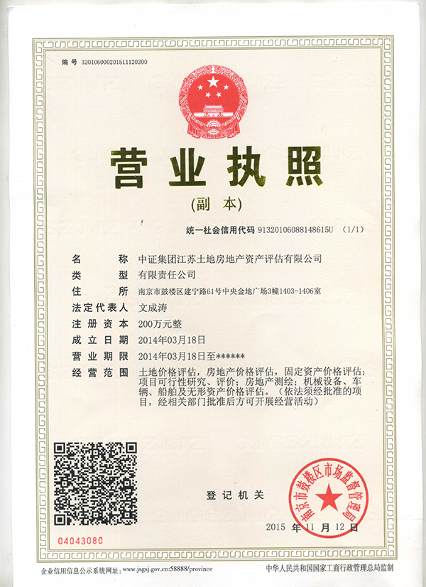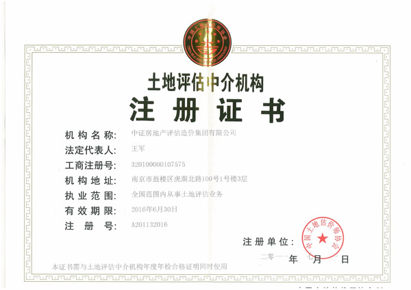 土地估价江苏省一级资信证书